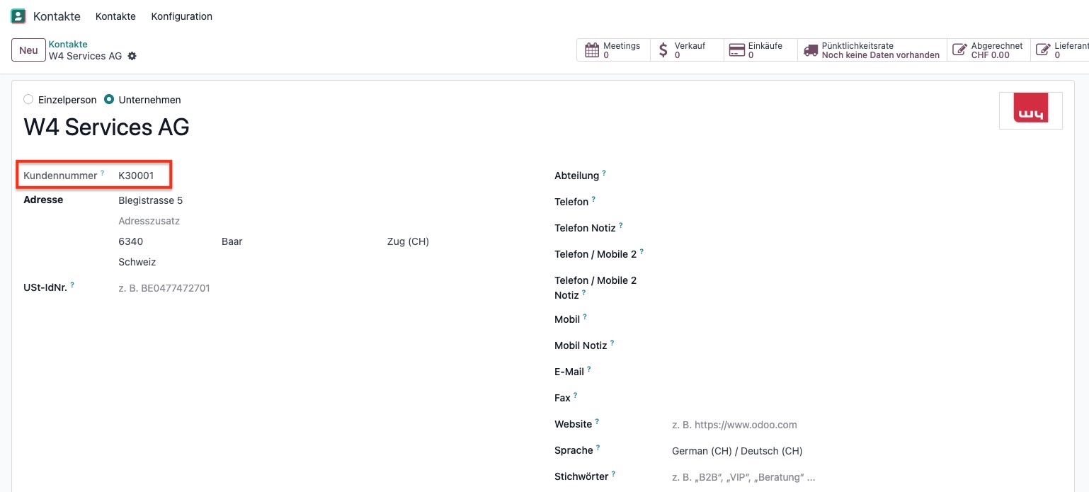 Kunden können in anderen Odoo-Apps auch direkt anhand ihrer Kundennummer gefunden werden.